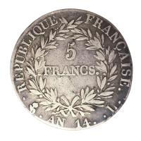 /VENDUE/ Napoléon Ier 5 francs An 14 L Bayonne